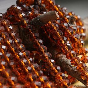 бусина, стекло абакус 8, граненая, цвет коньячный, 8х6 мм