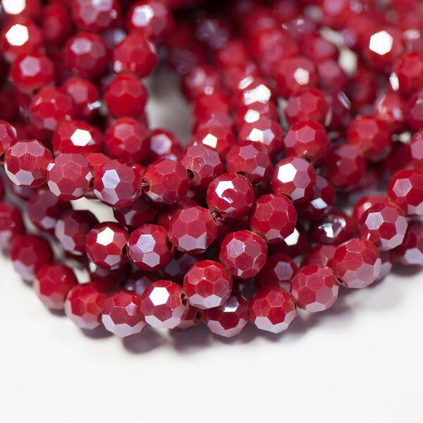 бусина, непрозрачная, граненая, стекло, цвет красный перламутровый, 8 мм
