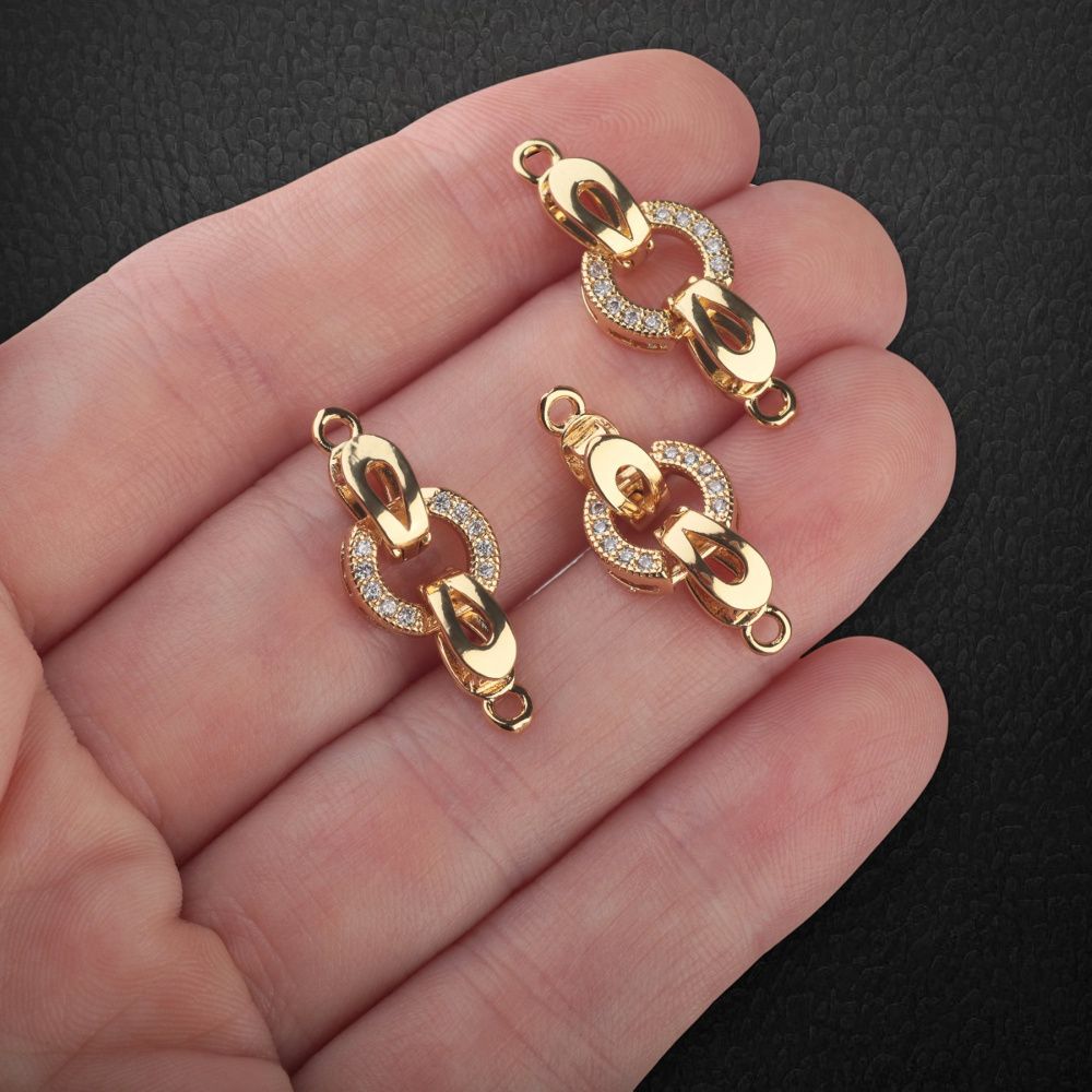 Замок для украшений "Фолд-ринг", позолота/стразы, 25.5 мм