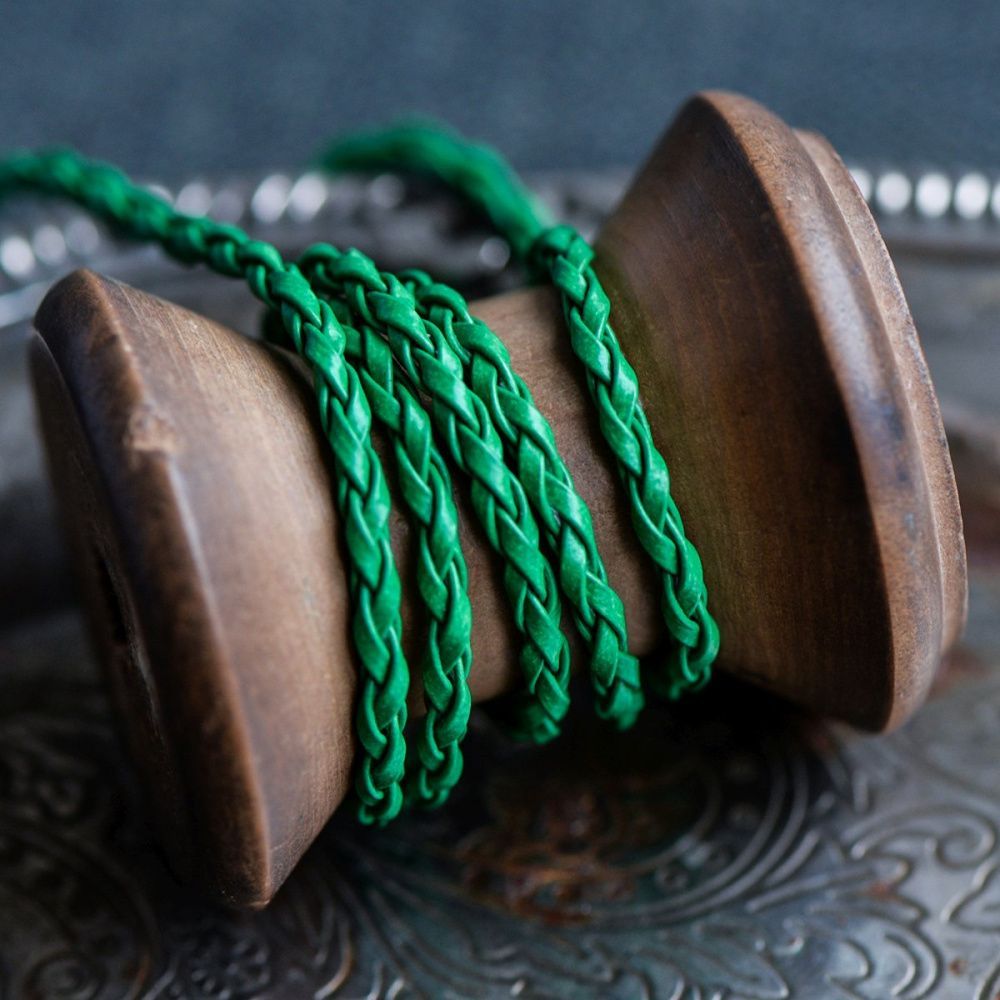 шнур, имитация кожи, плетеный, цвет зеленый, 3 мм