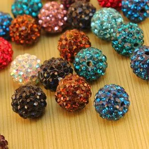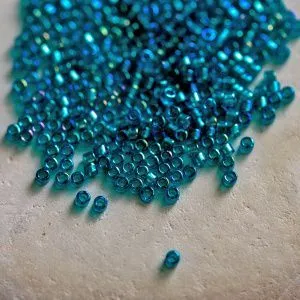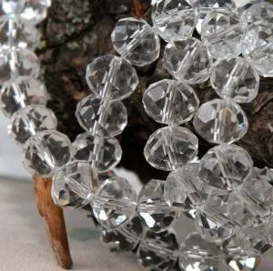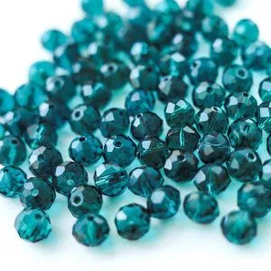 2. Серьга состоит из двух частей: одна — на пин-гвоздик нанизываем бусину-каплю, прозрачную абакус и в завершении бирюзовую абакус. Вторая часть: на пин с петелькой нанизываем бусину бирюзовую абакус, белую шамбала, и наконец — бисеринку.
