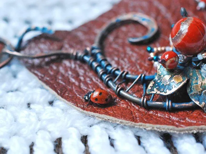 22. Вот что получилось. Частичная полировка, лак в два слоя с просушкой. Для крепления к воротничку делаю отверстия и "пришиваю" оставшейся проволокой с бисером. С лицевой стороны места крепления слегка зачищаю и лакирую