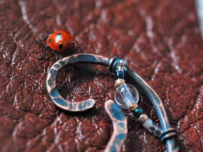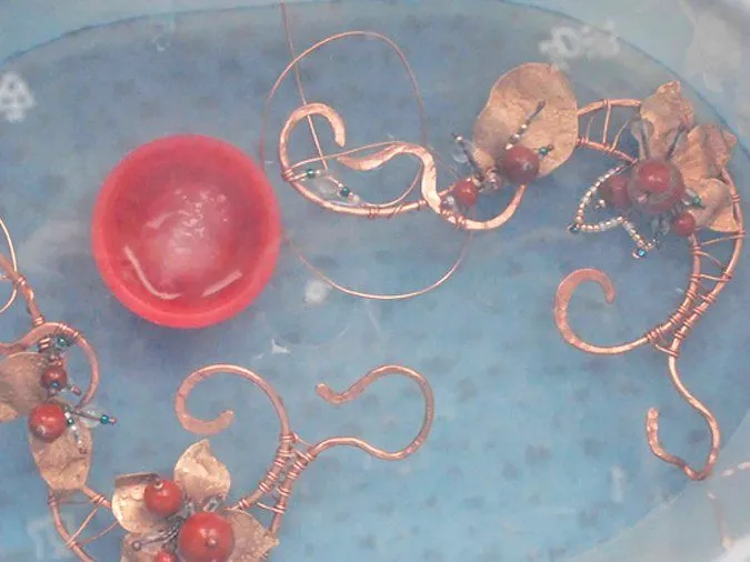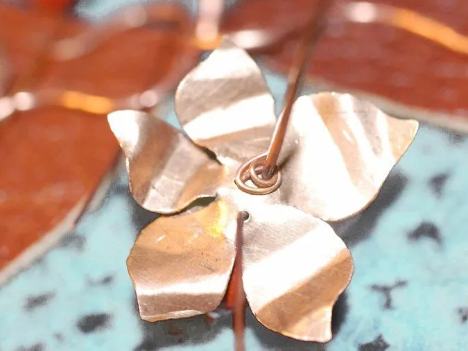 9. Круглогубцами и плоскогубцами изгибаю лепестки и листики. Добавляю элементы из согнутой и частично отбитой проволоки (1,5мм), кончики обрабатываю напильниками