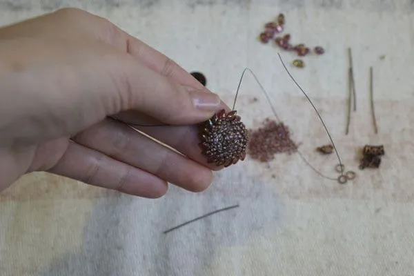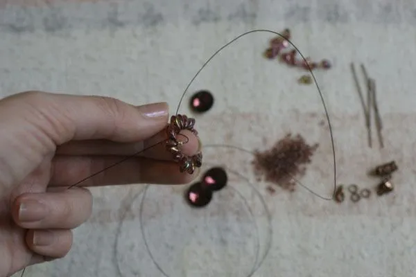 29. На швензы нанизываем по 6 бисеринок, при желании их можно подклеить. Присоединяем швензы к петельке на наших кабошонах.