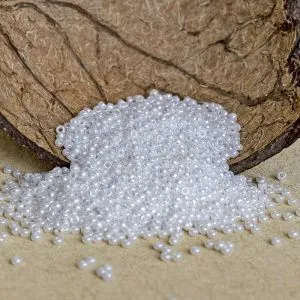 3. Начнем нанизывать бисер и бусины на оба конца ланки.