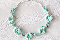 Воздушное колье с бело-мятными цветами
