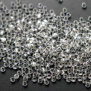 2. Прошивая сутажные слои одной стороны, уводите иголку ниже бусины и сшивайте вместе все 6 сутажных слоев 5-6 стежками.