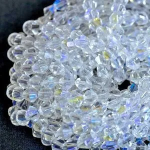 17. Теперь берем биконус Сваровски 6 мм оттенка White Opal (у меня в данной работе вместо биконусов Сваровски использованы чешские) и пришиваем их несколькими стежками