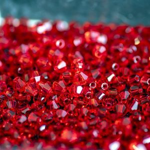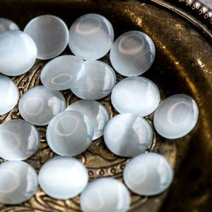 3. Вокруг кабошона нашиваю гранёные бусины.Основную площадь работы будут составлять бусины и стразовая цепочка. Мелким бисером вышиваю место вокруг кабошона.