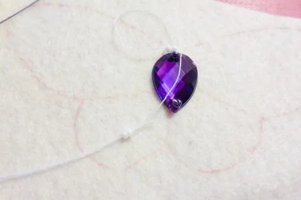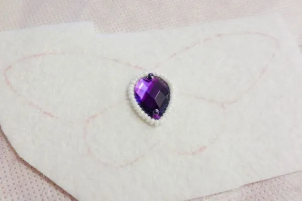 2. Начинаем делать тельце бабочки. Пришиваем страз к фетру.