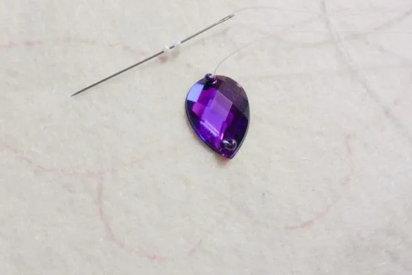 9. Обшиваем темно-фиолетовым край бабочки таким же способом, как и обшивали страз.