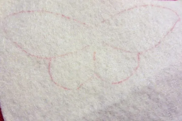 1. Для начала распечатываем выкройку будущего изделия и перерисовываем его на фетр. Вырезаем четко по линии. Внутри прорисовываем крылышки.