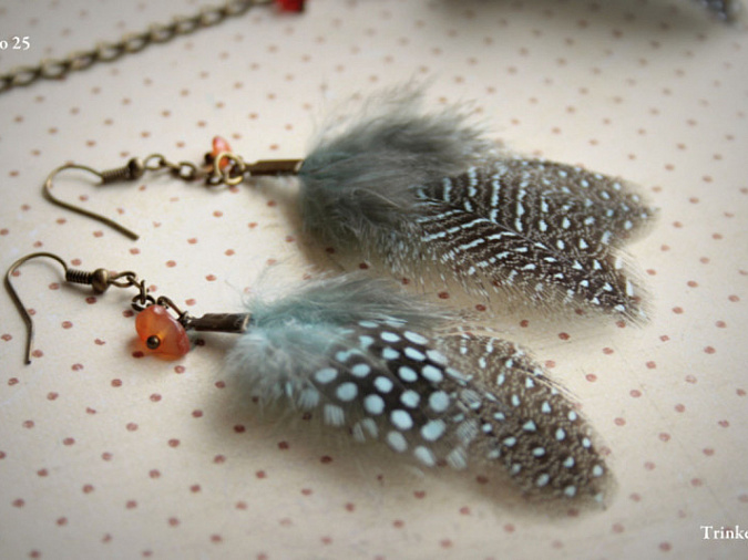 22. Возьмем 10 мм цепи, присоединим с помощью соединительного колечка перо и накрученную бусинку.