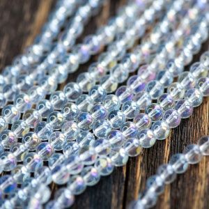 16. Тросик обрезаем, кримп зажимаем плоскогубцами и нанизываем оставшиеся низки. Вот так выглядит получившееся колье.