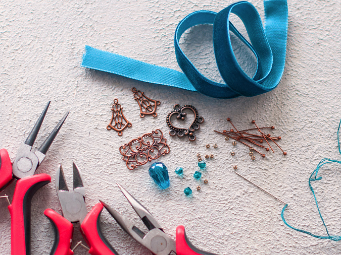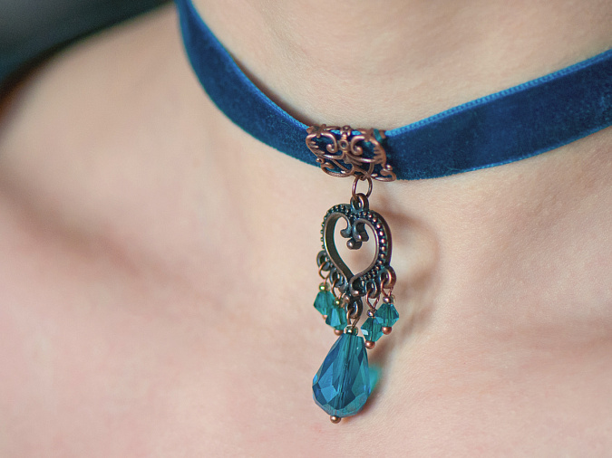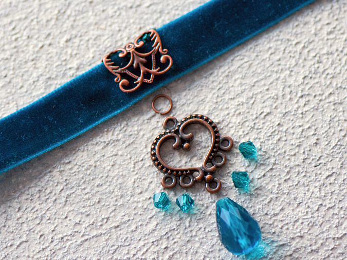 Я выбрала широкую бархатную ленту в качестве основы для чокера. Все материалы для чокера я выбрала в Кафебижу. Ниже более подробная информация.