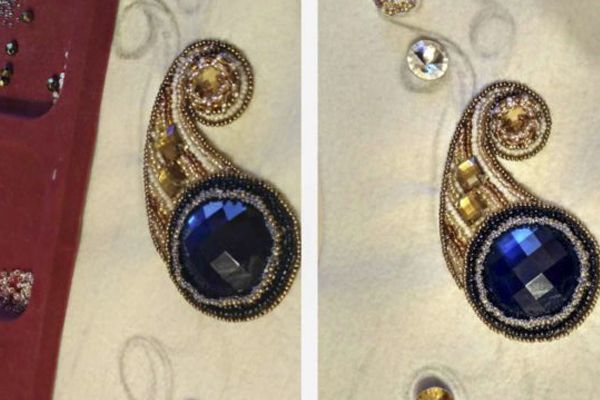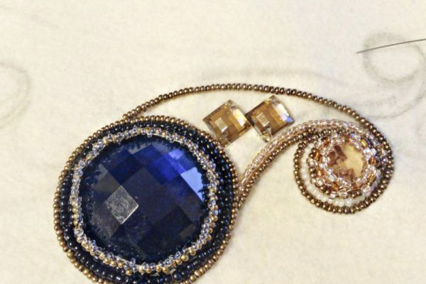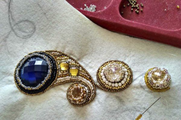 10. Оплетаем риволи согласно нашим наброскам и пришиваем их на свои места.