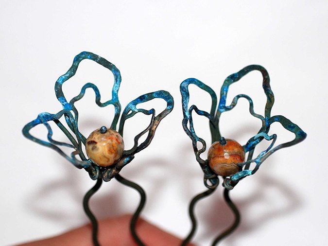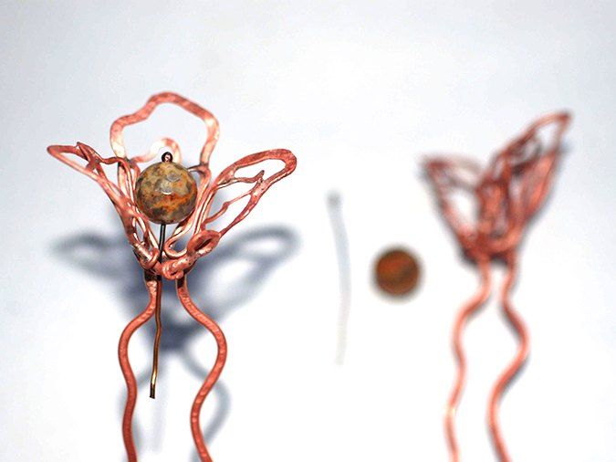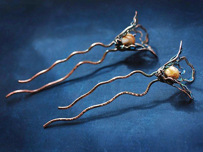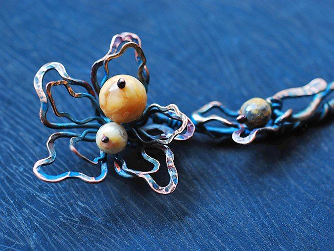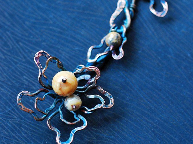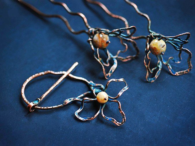 Представляем вашему вниманию мастер-класс по изготовлению цветка из медной проволоки - можно использовать как для шпилек, так и для любого другого изделия (как пример представлены брошь-фибула и колье). Мастер-класс подготовила