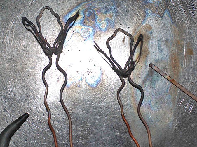- любая огнеупорная поверхность, на которую бросаю обработанную после горелки проволоку остывать, а плоскогубцами хватаю следующий кусочек проволоки (можно использовать наковаленку, если её площадь позволяет)