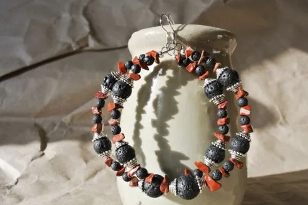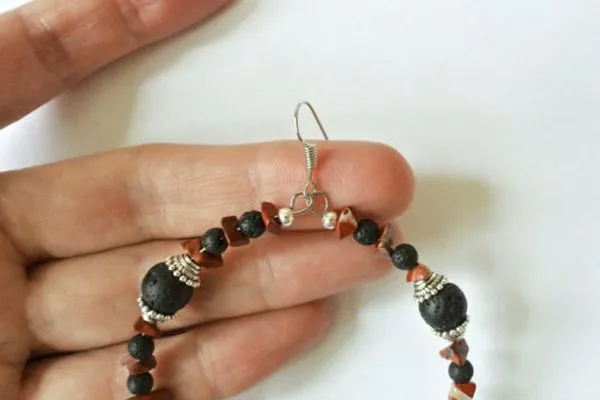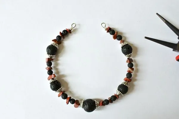 3. Нанизываем все бусины и шапочки для бусин согласно фото.